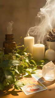 *Un ritual de limpieza energética: Un ritual personalizado diseñado específicamente para eliminar energías negativas y bloqueos emocionales (puede incluir velas, incienso, cristales, etc.).